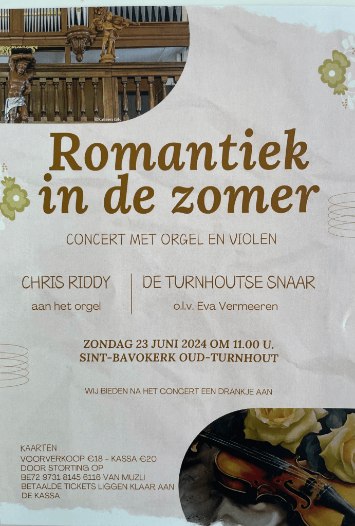 Zondag 23 Juni 11u Turnhoutse Snaar ST- Bavo Kerk Oud-Turnhout 11u ‘Romatiek in de Zomer’